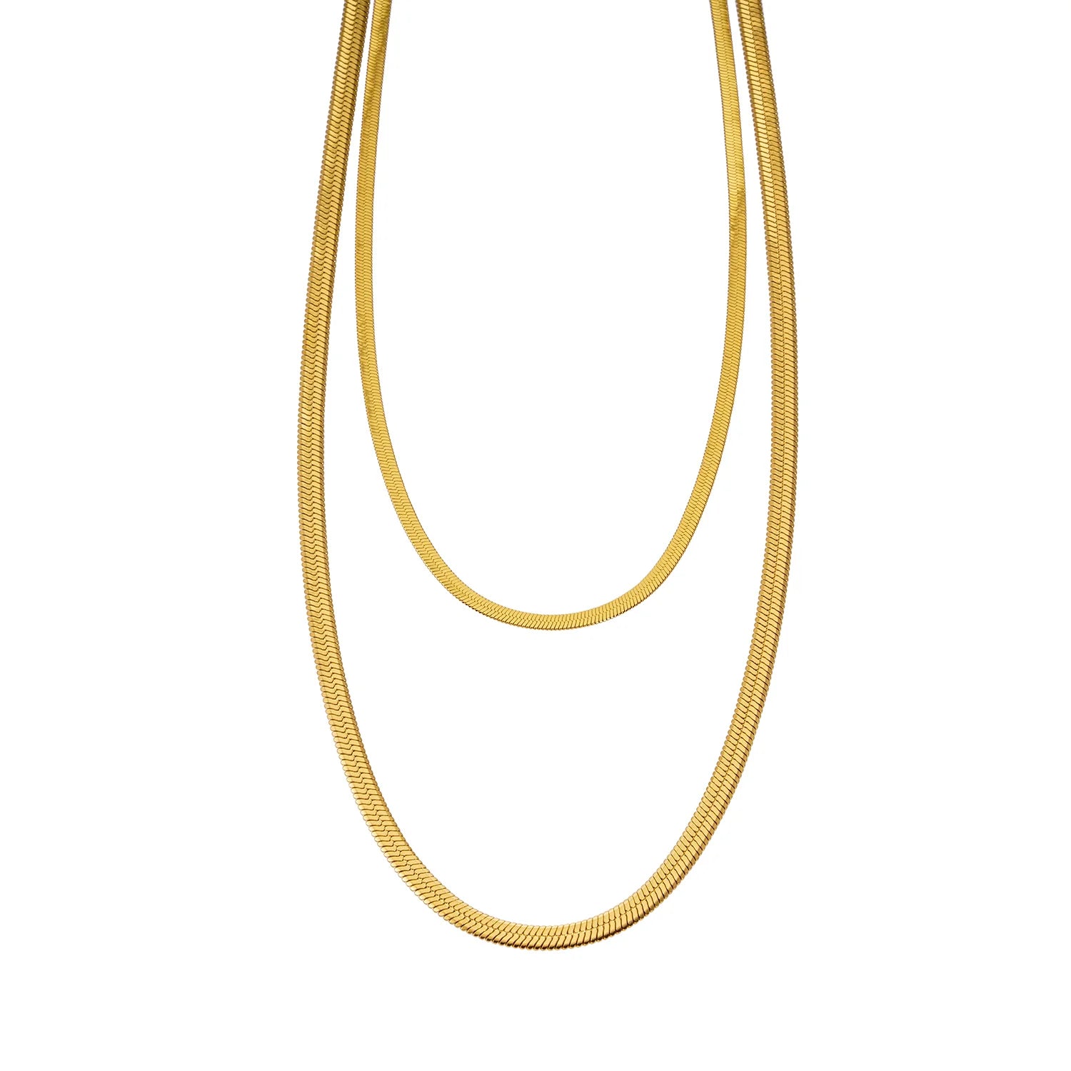 Jewel up in style. Bring rich texture and shine to your neckline with this classic, yet contemporary 2-layer necklace in two varying widths.