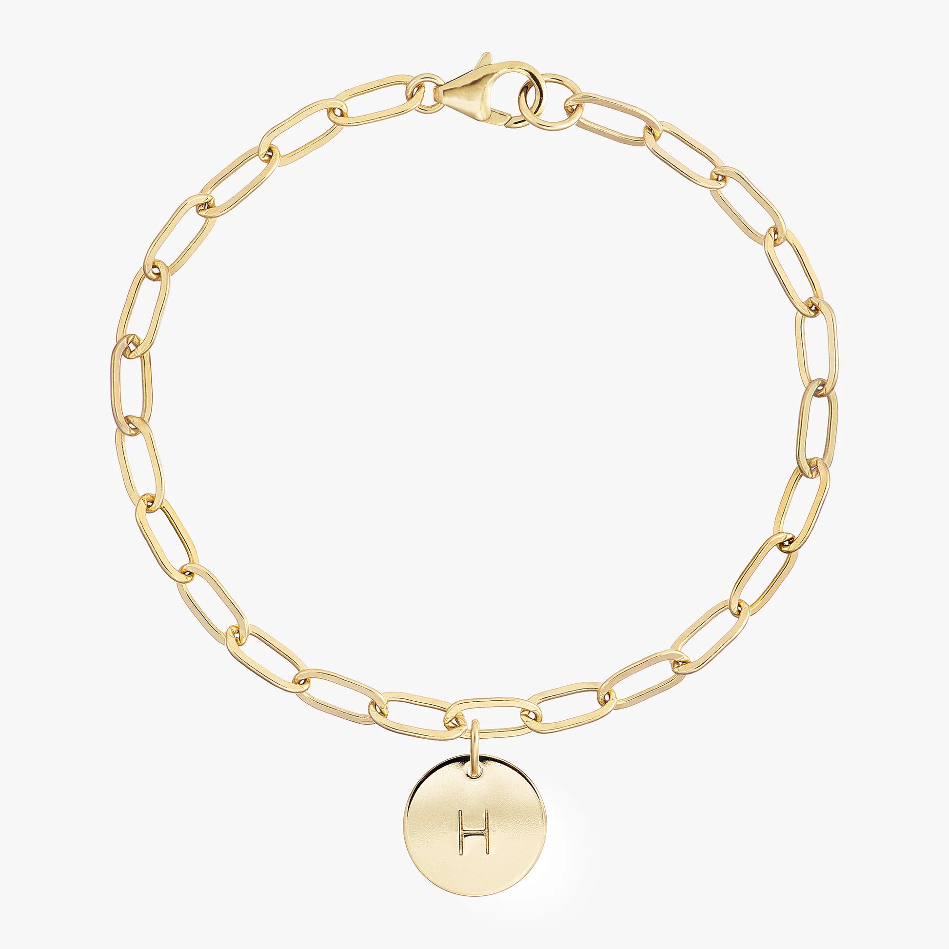 A timeless bracelet with a personal touch — featuring a bold Isabel chain and your chosen initial, hand-stamped just for you or someone you love.