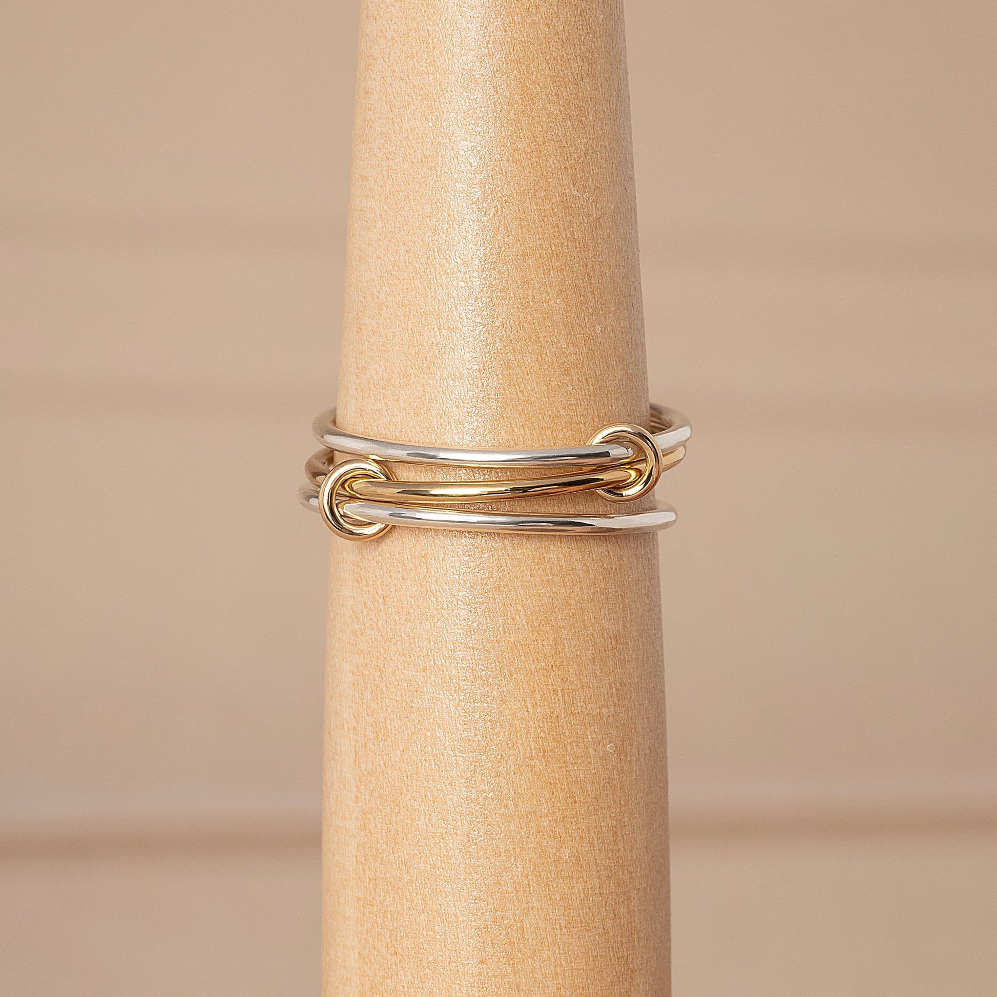 Elevate your ring stack with the Two Tone Linked Stacker Ring, crafted with linked gold and silver tones for a chic, contemporary finish. Lightweight and comfortable, it’s ideal for everyday wear.